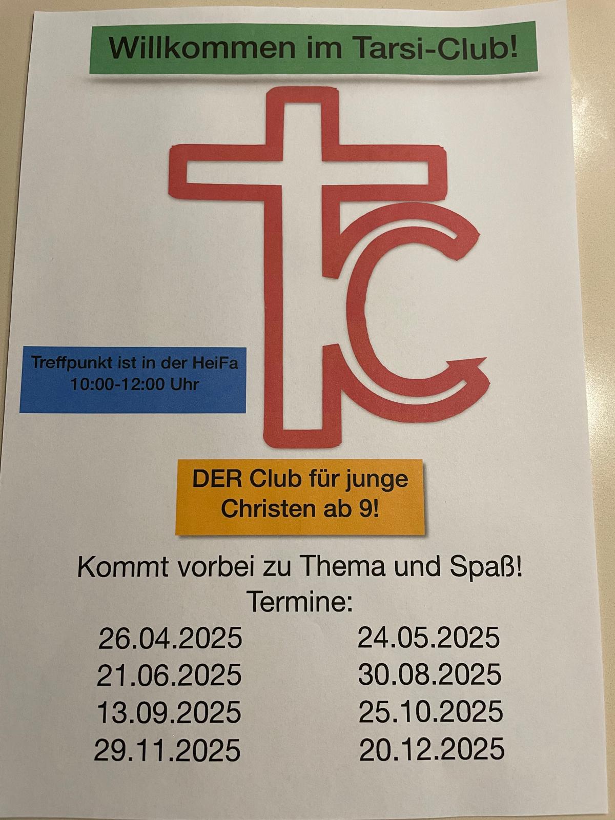 Der Tarsi-Club ist ein neues monatliches Angebot für Schüler ab 9 Jahre. Die monatlichen Treffs in der Heiligen Familie Zwickau beginnen 10:00 Uhr, Ende ist gegen 12:00 Uhr.