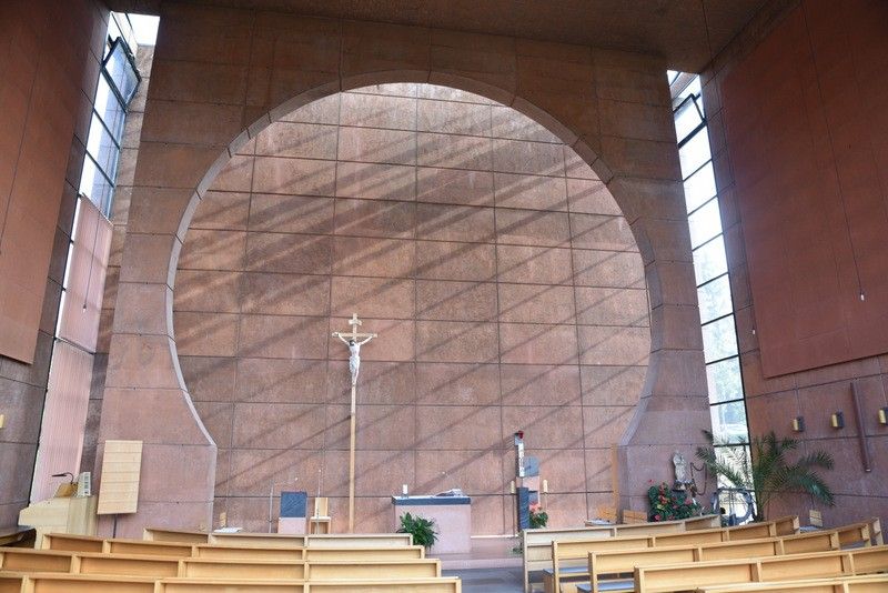 Jeder Winkel der Kirche ist von außen einsehbar. Für den Betrachter eröffnen sich im Kirchenraum, unterstützt durch eine gekonnte Lichtführung, immer wieder neue Perspektiven.