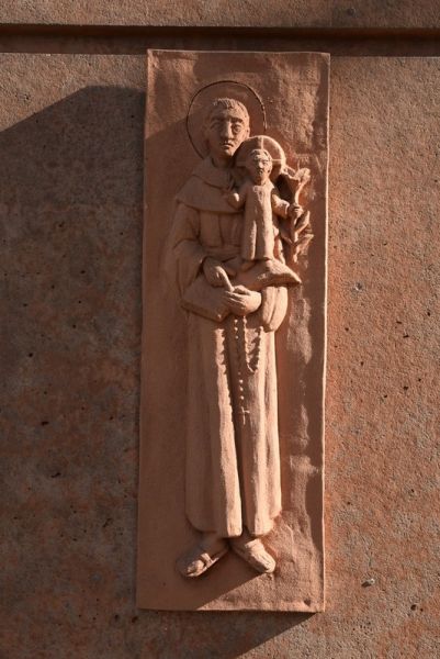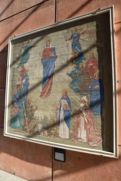 Auf der rechten des Hauptportals steht ein weißes Kreuz.